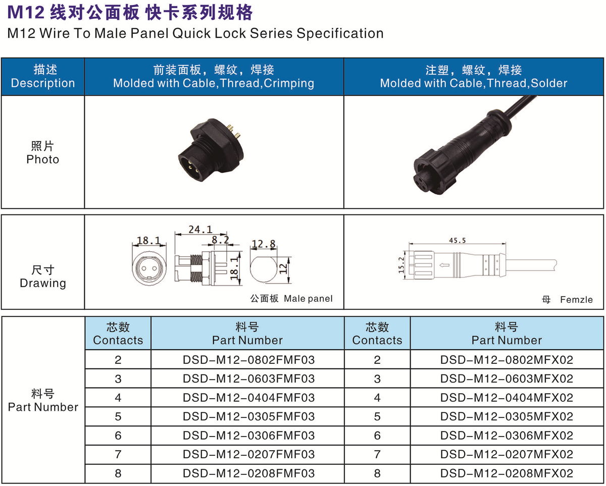 M12 線對公面板 快卡系列
