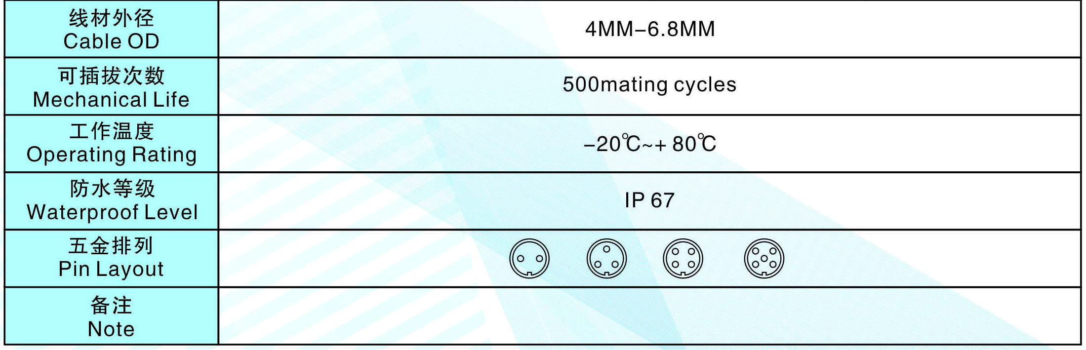線材外徑(Cable  OD):4MM-6.8MM