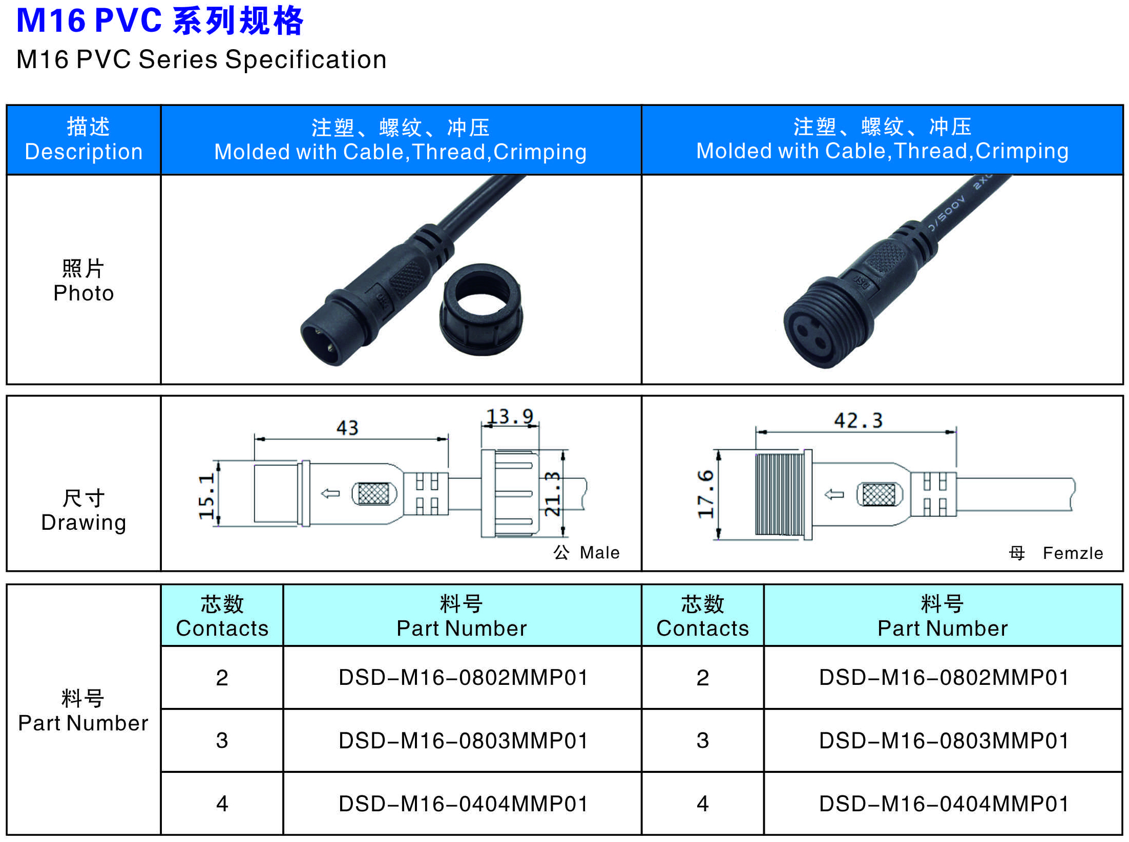 芯數(Contacts Number): 2 - 4 芯