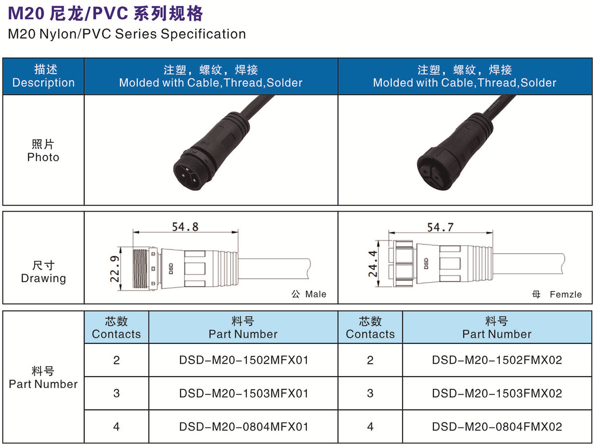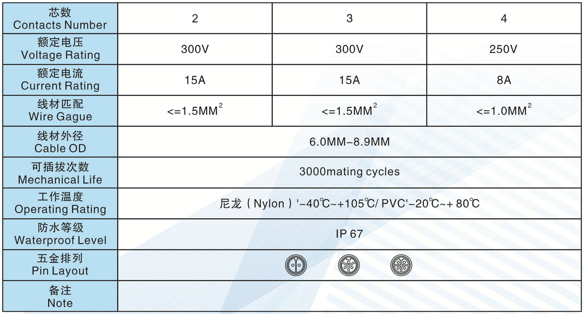 芯數(Contacts  Number) :           2芯                   3芯                      4芯