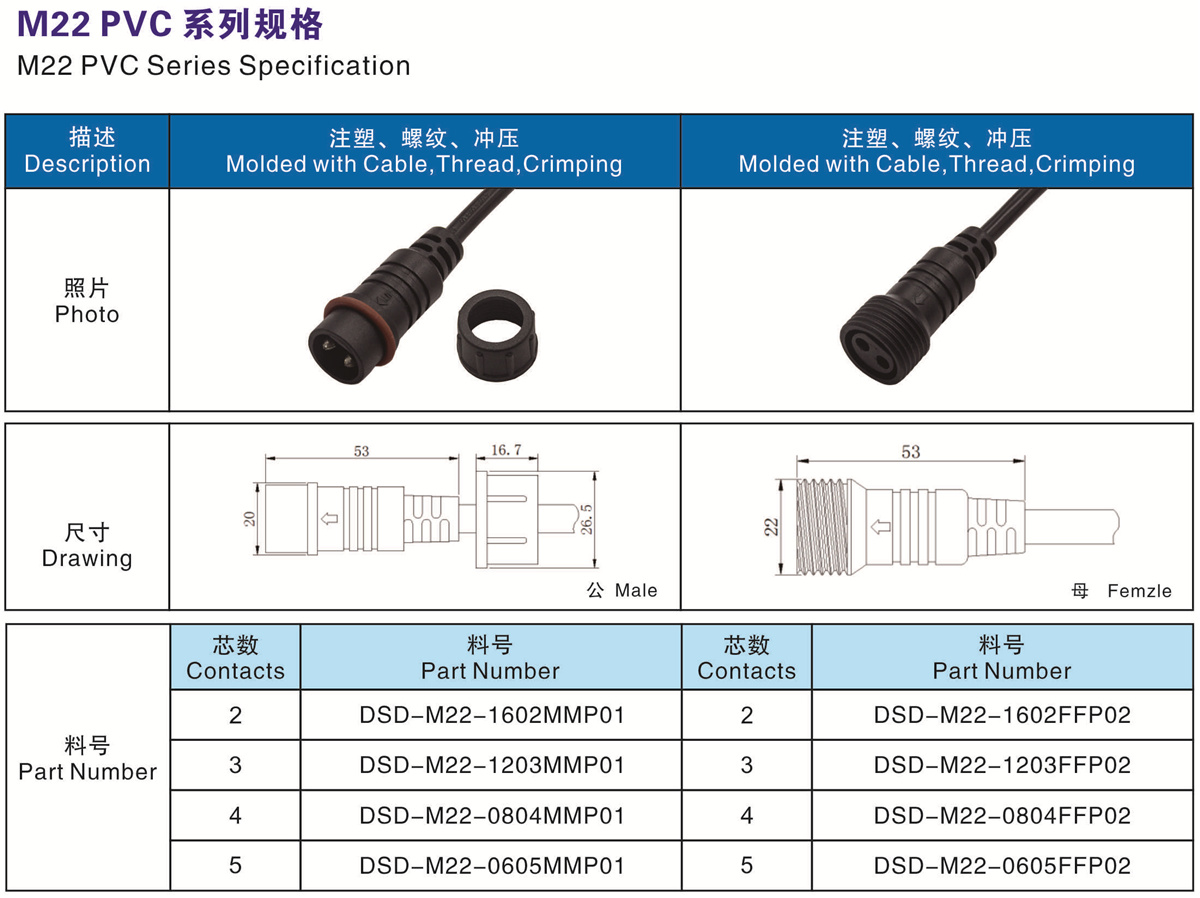 東勝達M22PVC,適用于通訊和照明等需要連接線的領域
