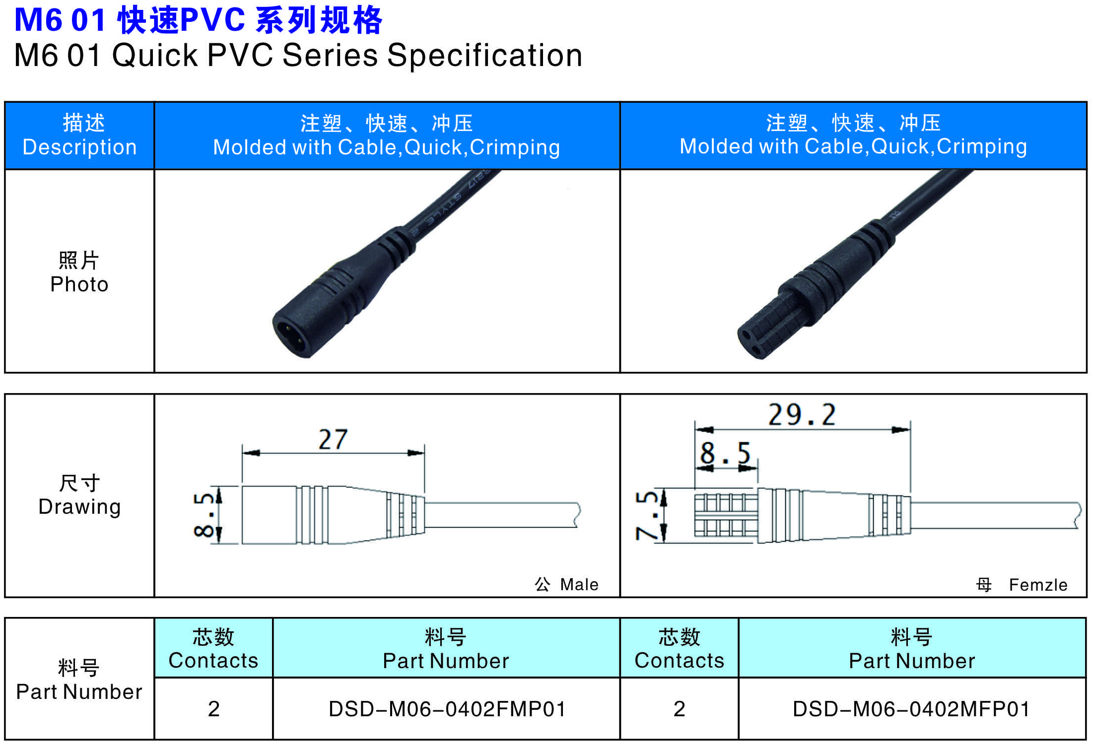 M6系列連接器,適用于共享單車,電動自行車,電動滑板車等,傳感器,線纜接頭