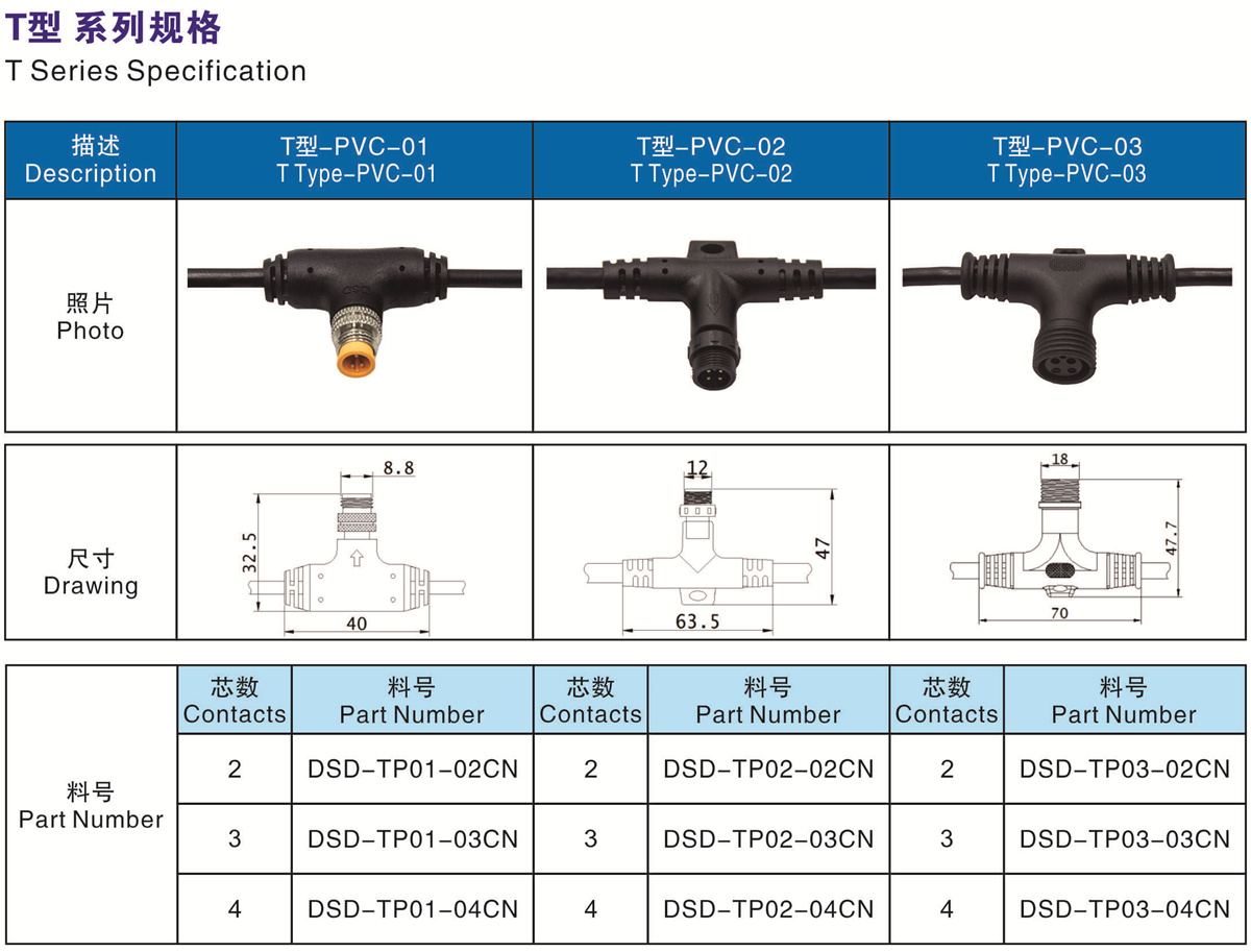 T型-PVC-03 (2芯 3芯 4芯)