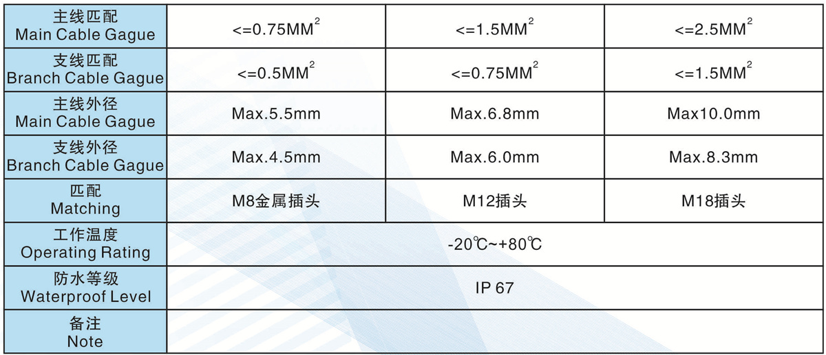 支線外徑(Branch Cable Gague):Max.8.3mm