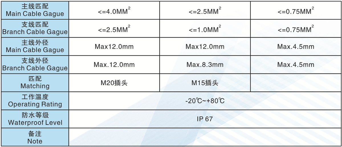 支線匹配(Branch Cable Gague):<=0.75MM2