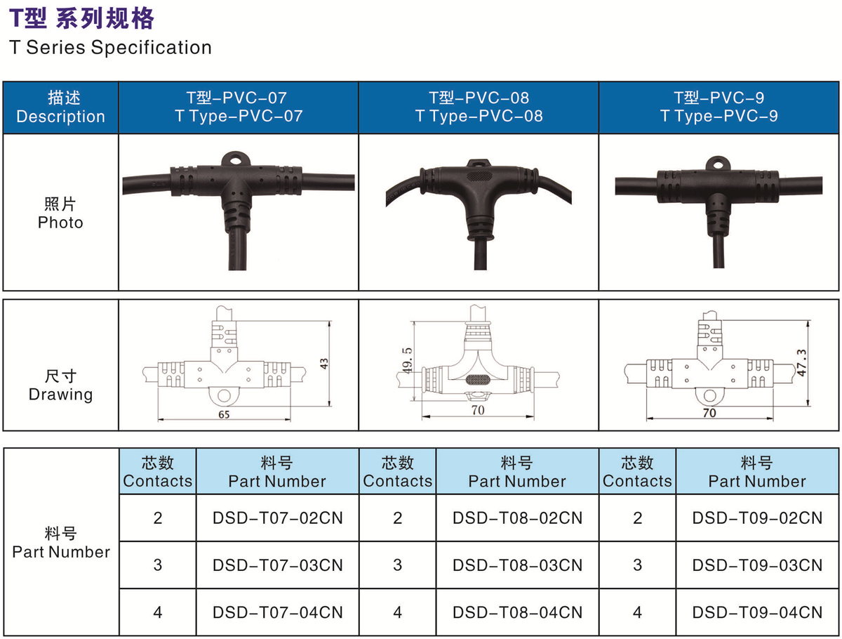 料號(Part Number) : 2芯(DSD-TP08-02CN) 3芯(DSD-TP08-03CN) 4芯(DSD-TP08-04CN)