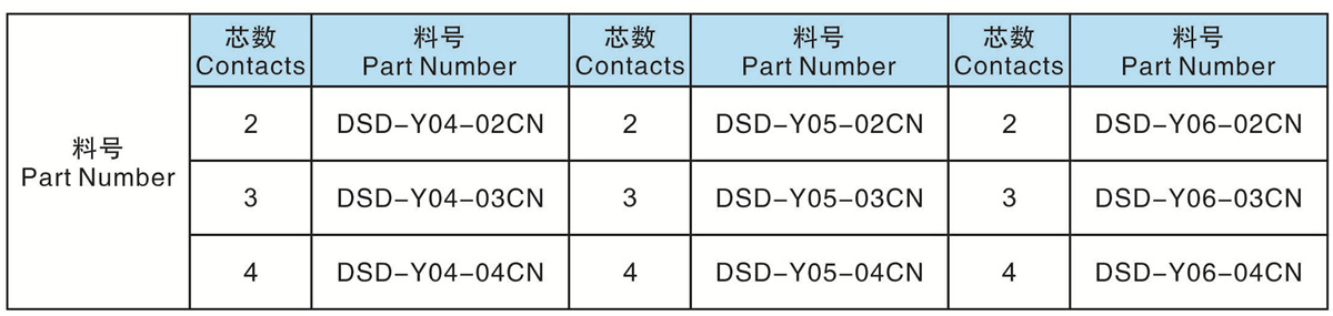 芯數(Contacts Number): 2 - 4 芯